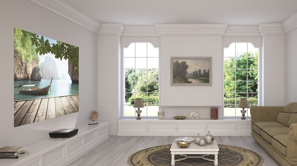 SIM2 xTV is an ultra-short throw projector which combines the excitement of the big screen with the most discreet display device ever created for a fully immersive viewing experience. It can be placed close to a wall, screen or vertical flat surface and display your favourite content in stunning detailed clarity up to a size of 110-inches.