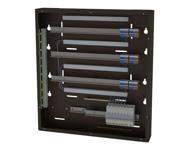 The LCP-RCBO is the pre-wired version of our Lutron DIN rail enclosure range (See LCP details). The LCP-RCBO has 10 Amp RCBOs fitted, a 100 Amp isolator switch and DIN rail terminal blocks. These are all pre wired and designed for ease of testing during installation.
