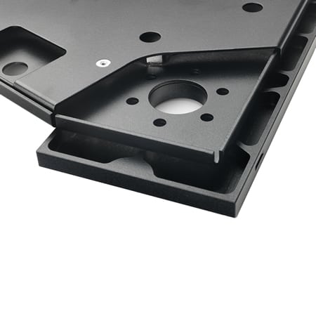 The armboard is now machined from solid using a similar process to Keel, with strengthening ribs on the underside, providing the ultimate in stiffness and rigidity. This is then bonded to a the sub-chassis so that the assembly now exhibits the properties of a single piece. The arm now has a direct connection to the bearing, as the arm collar is bolted directly to the sub-chassis.