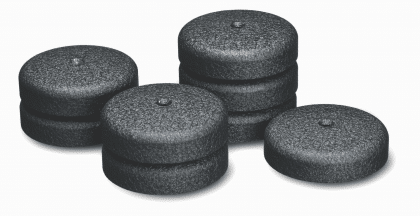 Linn Skeet Floor Protectors, Skeet floor protectors are easily concealed under loudspeakers and loudspeaker stands to help protect wooden or tiled floors from the spiked feet of Linn loudspeakers and loudspeaker stands – which improves their stability and overall performance. Linn floor protectors are available in a black finish and come in packs of eight.