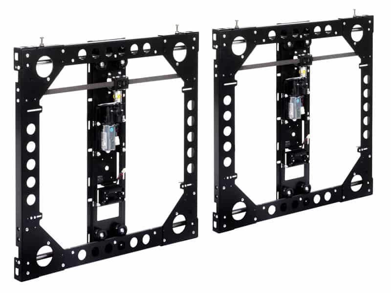 The Picture Split Mechanism is a dual horizontal moving panel mechanism that allows a flat screen to be concealed behind two pictures or panels. Ideal for when vertical height is not available, the Picture Split Mechanism drives two panels left and right to reveal the screen. A superb alternative to a single picture – the Picture Split opens up a wide range of design options to add to any interior decoration. (See PICSIDE or PIC Lift for single panel mechanisms.)