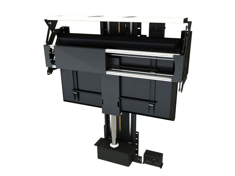 The TV Floor Lift mechanism is a custom designed mechanism that allows a flat screen to be stored in a floor out of sight. The unique walk over flap mechanism allows for a seamless transformation from the concealed to the revealed. As smooth as it is strong, the TV Floor Lift offers an unrivalled amount of wow factor for when only the most elaborate automation will do.